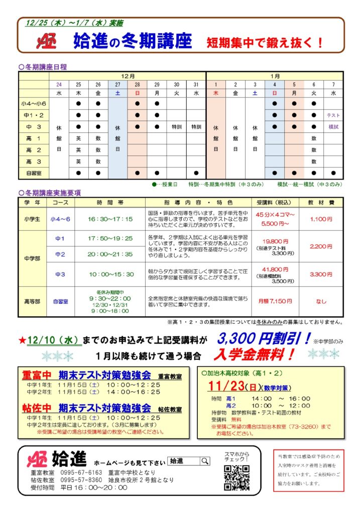7日間の指導で中学1・2年生は1・2学期内容の復習、